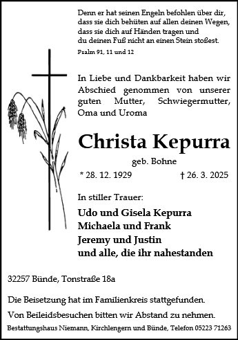 Christa Kepurra geb. Bohne